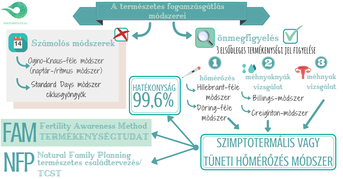 A három elsődleges termékenységi jel megfigyelésén alapszik. Tehát az ébredési hőmérséklet, a nyák és a méhnyak vizsgálatán. Ehhez még hozzávehetjük az egyéb termékenységi jeleket, például vannak olyan nők, akik még azt is érzik, hogy a tüszőrepedés éppen melyik oldali petefészekben következik be. Ezt táblázatban vezetve nagyon pontos képet kapunk a termékeny időszakról, a termékenységünk és a testünk működéséről. Ezért is nevezzük termékenységtudat-módszernek. Hatékonysága: 99,6%