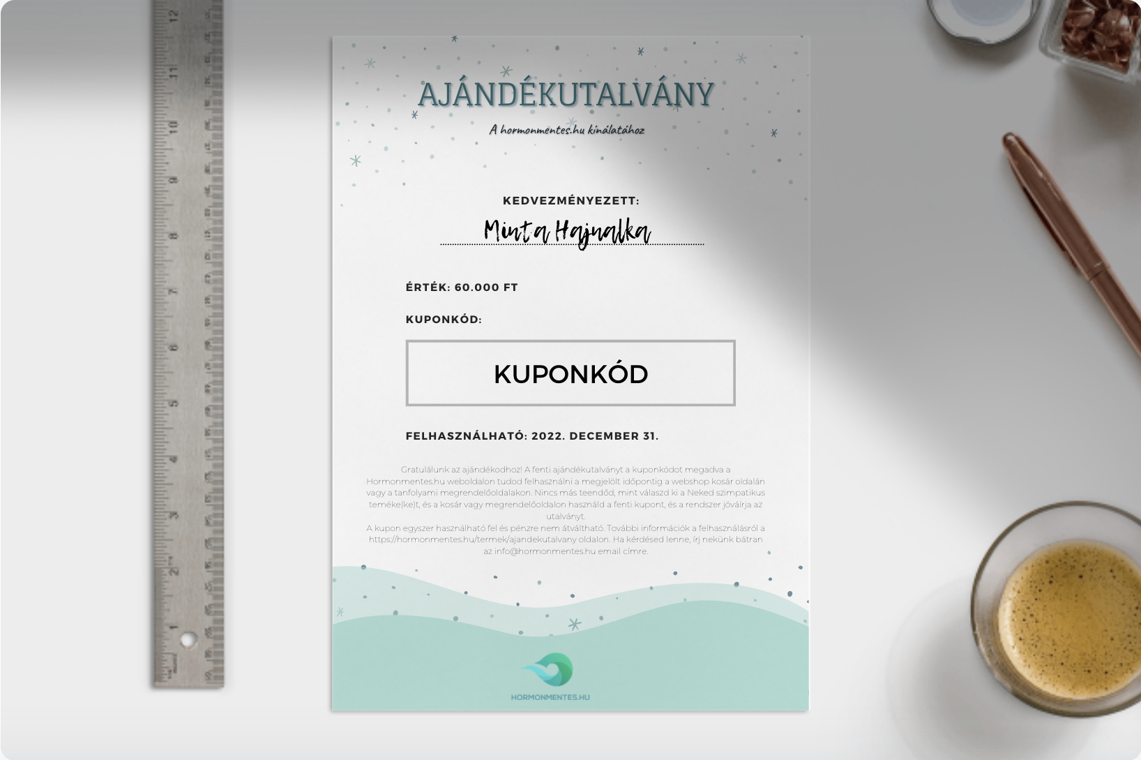 * Fontos számunkra a környezetvédelem, ezért papíron, kinyomtatott formában kupont nem küldünk ki, ugyanakkor az emailben kiküldött kupon nyomtatható, ajándékként átadható. Fentiekből fakadóan az ajándékutalvány utánvéttel értelemszerűen nem fizethető.