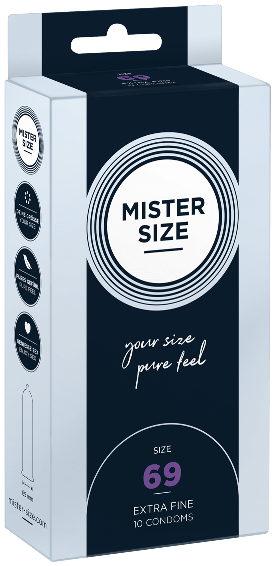 A Mister Size-nál 7 különböző méret közül választhatsz: 47 és 69 mm közötti névleges szélességgel. Így végre olyan óvszert használhatsz, amivel az összes korábbi bosszantó tényező kiküszöbölhető.