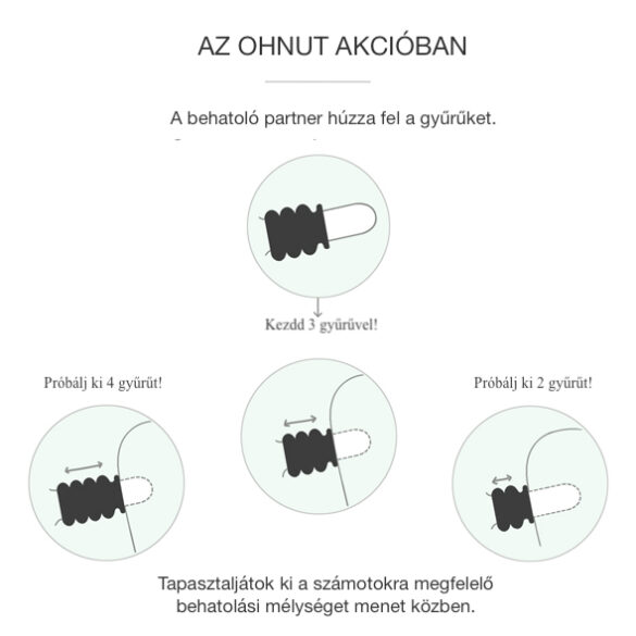 Előfordul, hogy fájdalmas a mélyebb behatolás? Az Ohnutnál tudják, mit érzel, és úgy gondolják, megérdemled a szabad választást. Az Ohnut csapata elismert egészségügyi szakemberekkel hozta létre az első viselhető eszközt, aminek segítségével kontrollálhatóvá válik a behatolás mélysége az intimitás feláldozása nélkül. Használat közben a gyűrűk összenyomódnak, mint egy puha „ütköző”, csökkentve ezáltal a behatolás mélységét. Így lehetővé válik a szexben tapasztalt esetleges fájdalmat élvezetté alakítani. Te és a partnered felfedezhetitek, mi az, ami igazán jó érzés – mindkettőtök számára.